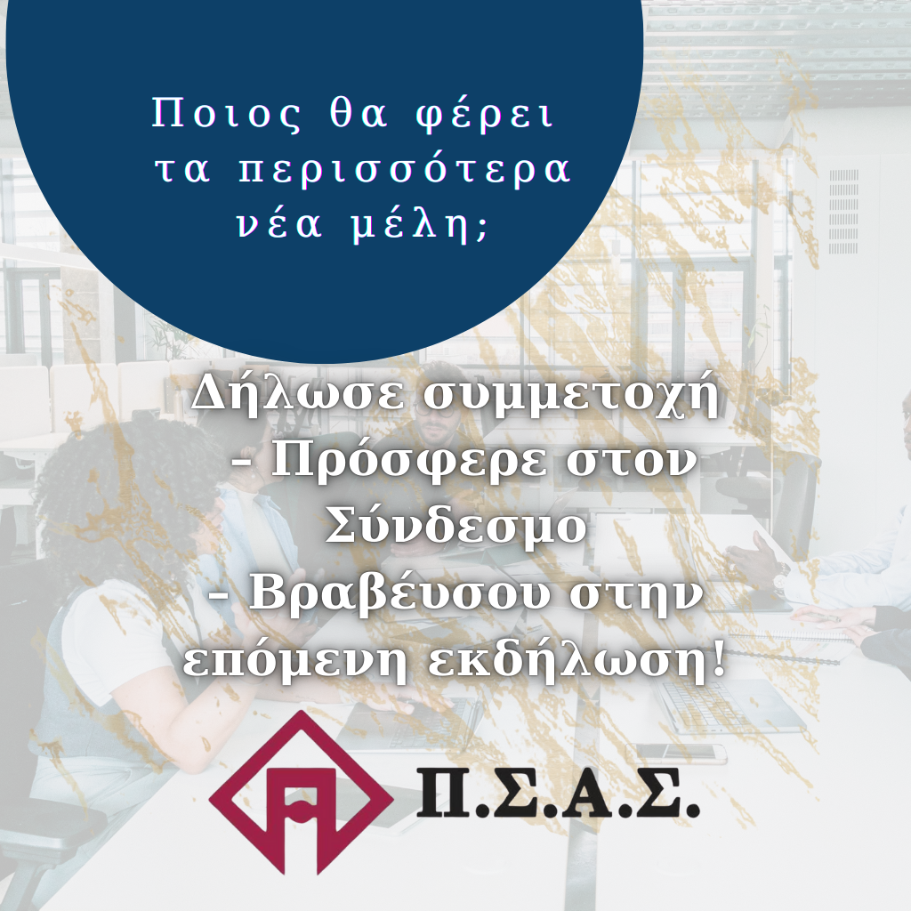 - Διεκδίκησε τη βράβευση στην επόμενη εκδήλωση του Π.Σ.Α.Σ., όπου θα τιμηθούν τα μέλη που έφεραν τους περισσότερους νέους συναδέλφους.